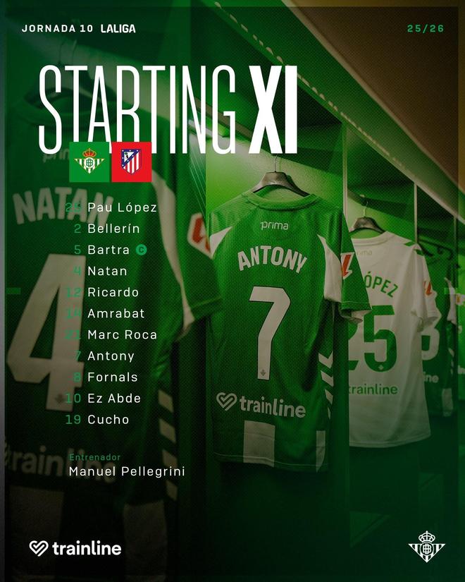 北京时间10月28日4点,西甲第10轮皇家贝蒂斯对阵马德里竞技,赛前公布首发名单。